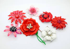 Hand Painted Vintage Flower Brooches