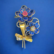 VMFA Gold Tone Blue Clear Rhinestones