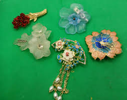 art deco french lucite floral brooch